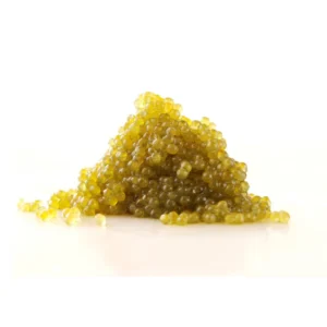 Tsar Nicoulai’s Wasabi Whitefish Roe stands out for its vibrant green hue and spicy kick, achieved naturally through vegetable juices and aromatic seeds. Each bead bursts with clean brine and bold wasabi flavor — perfect for anyone who enjoys a little heat with their sophistication.