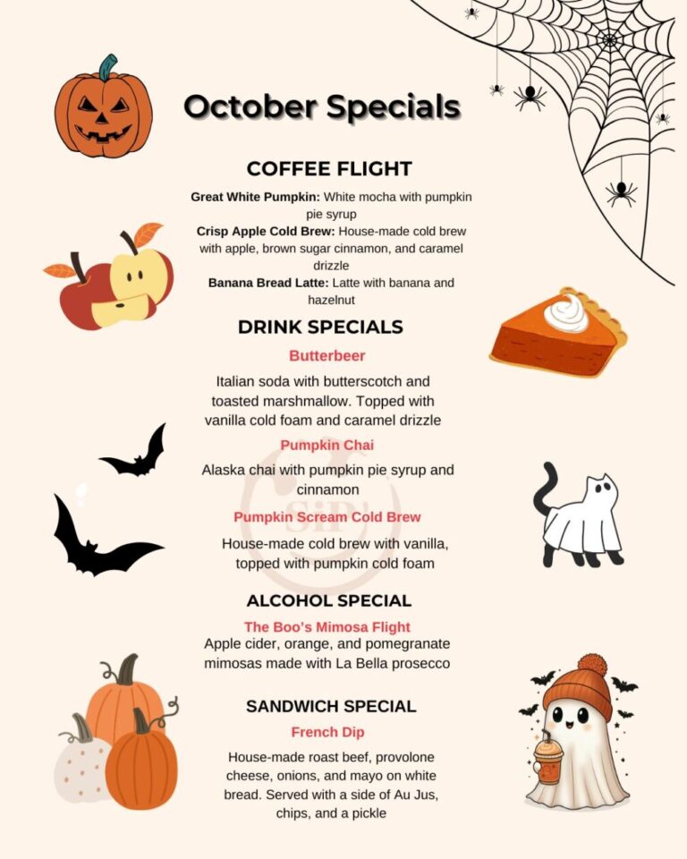 We started out as Sip Coffee Lounge and have expanded our menu into wine and beer as well. We also offer a variety of menu items including Redbull sodas and Lotus.